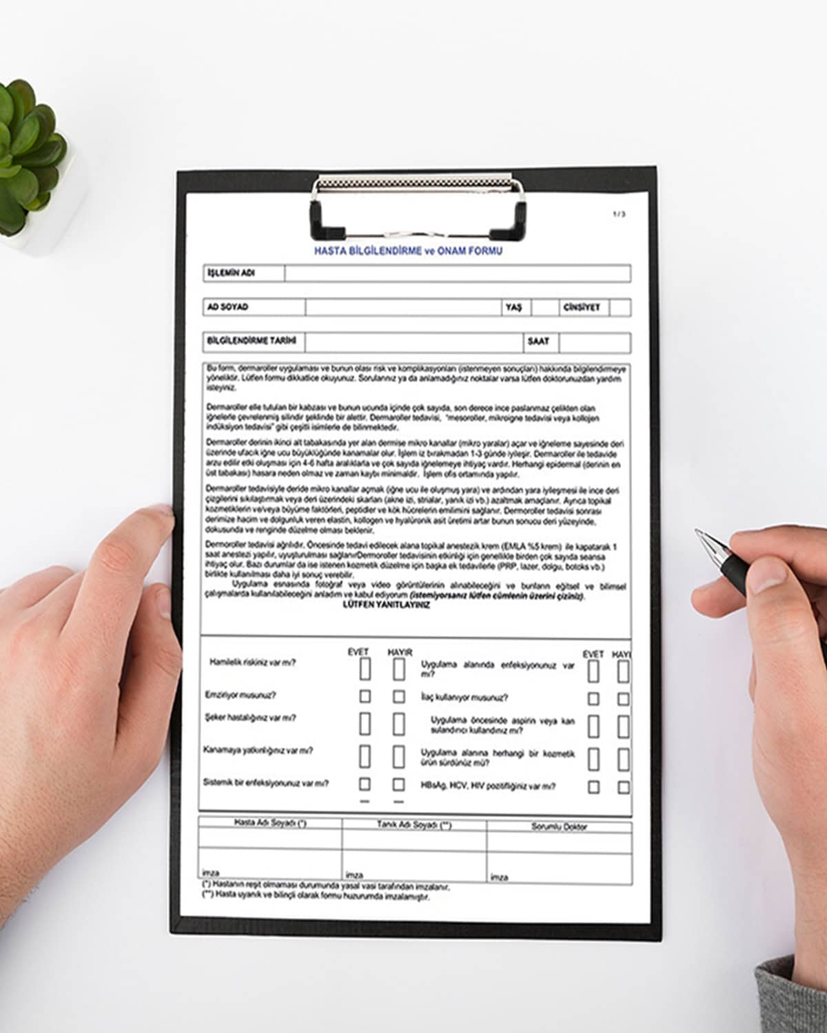 Hasta bilgi formu A4 boyutundaki 1. Hamur 80 gr. kâğıt üzerine 4+0 CMYK renkleri kullanılarak basılır. Siparişinizi online olarak oluşturduktan sonra tasarımınızı yükleyerek siparişinizi tamamlayabilirsiniz