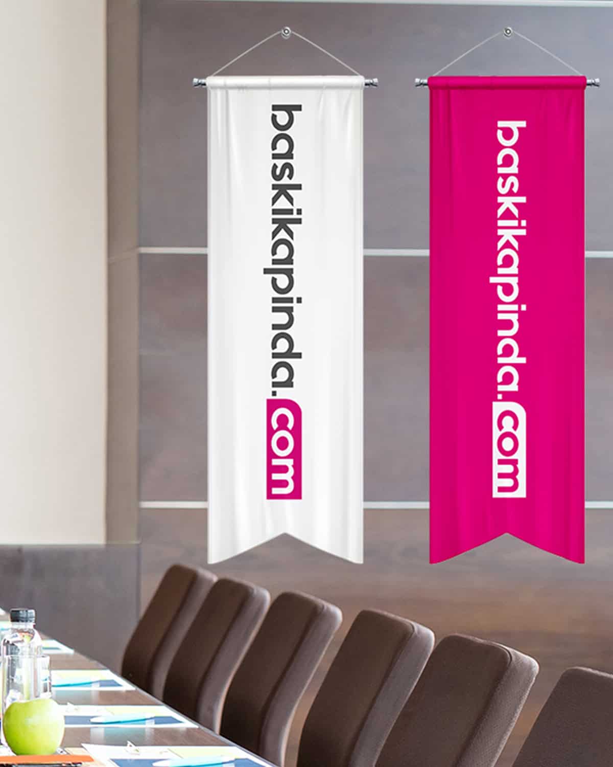 Kırlangıç bayrak, adını kırlangıç kuşunun kuyruğuna benzeyen kesim şeklinden alır ve genellikle tanıtım ve reklam amacıyla kullanılır. Bu bayraklar, firmaların, şirketlerin, etkinliklerin veya ürünlerin tanıtımı için etkili ve dikkat çekici bir yöntem sunar. Kırlangıç bayraklar, tanıtım reklam amaçlı veya İşletmelerde, fuarlarda, mağaza önlerinde, açık hava etkinliklerinde ve daha birçok alanda kullanılabilir.